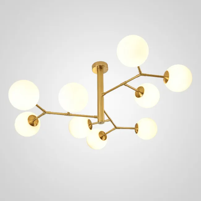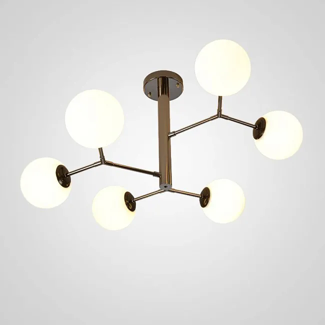 Представляем вашему вниманию люстру MARYON - стильное и современное решение для освещения вашего интерьера. Эта люстра обладает уникальной конструкцией, состоящей из шарообразных матовых плафонов, расположенных на угловых рейках. Такая форма не только придает люстре элегантный и изысканный вид, но и обеспечивает равномерное распределение света по всей комнате.