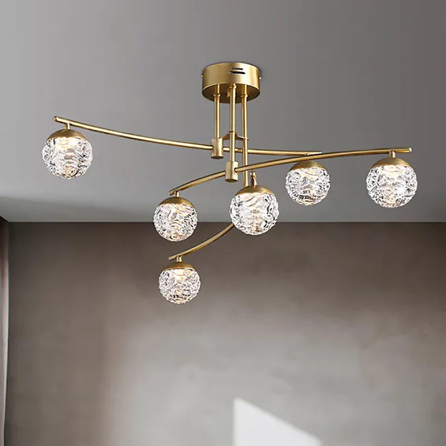 Понравилась сразу эта люстра и до сих пор на неё с удовольствием смотрю. Всё в ней прекрасно. Латунь замечательно сочетается с матовым стеклом плафонов. Нежный свет без напряжения для глаз, не слепящий он. Рейки тут в разные стороны смотрят, поэтому лучи разливаются по всему пространству. Сделано всё качественно. В общем советую покупать!