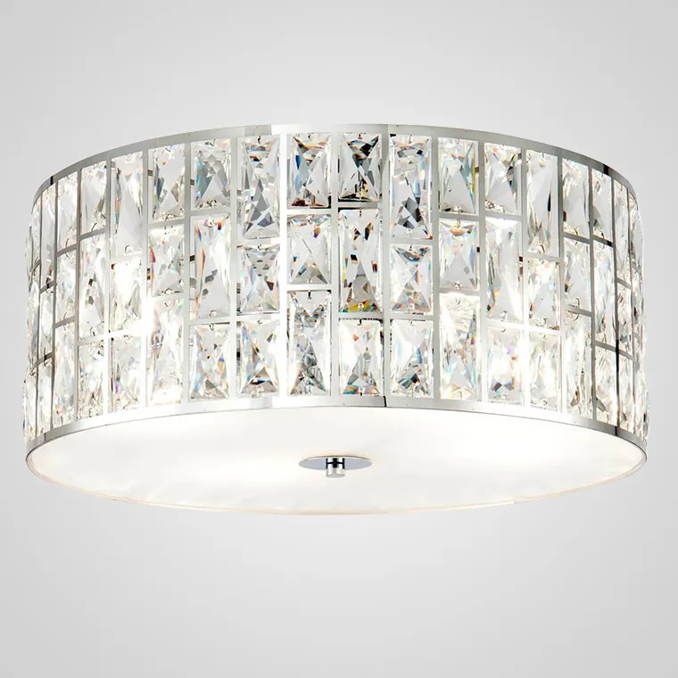 Потолочная люстра с гранеными кристаллами в прорезных прямоугольных окнах