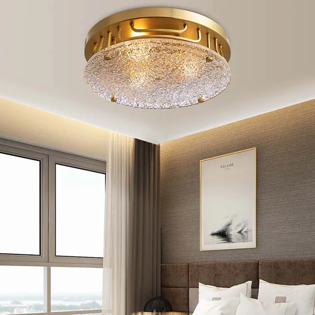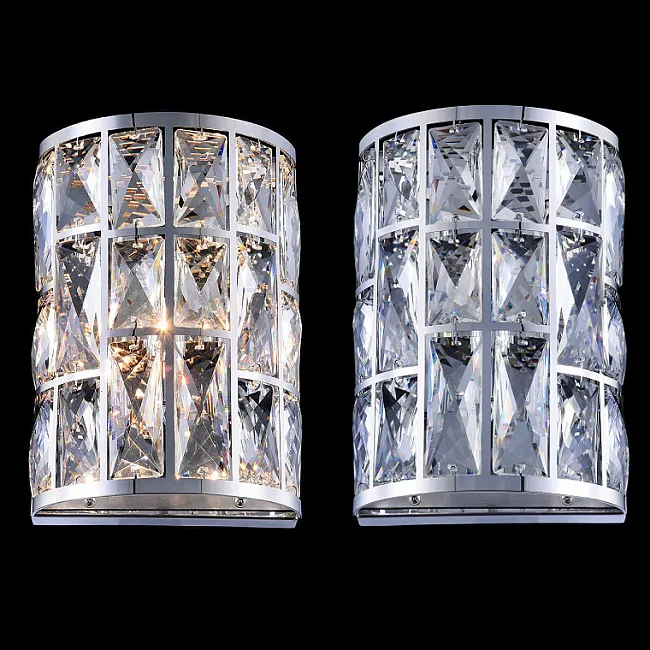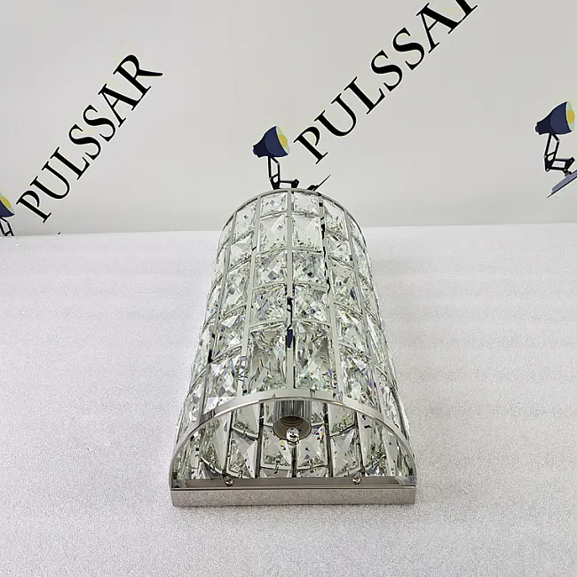 Потолочная люстра с гранеными кристаллами в прорезных прямоугольных окнах