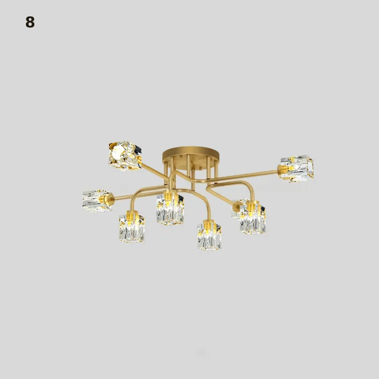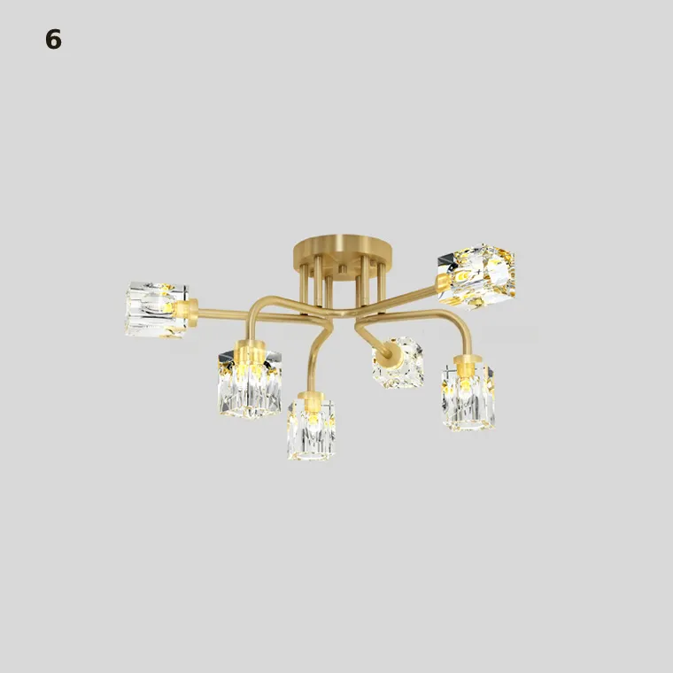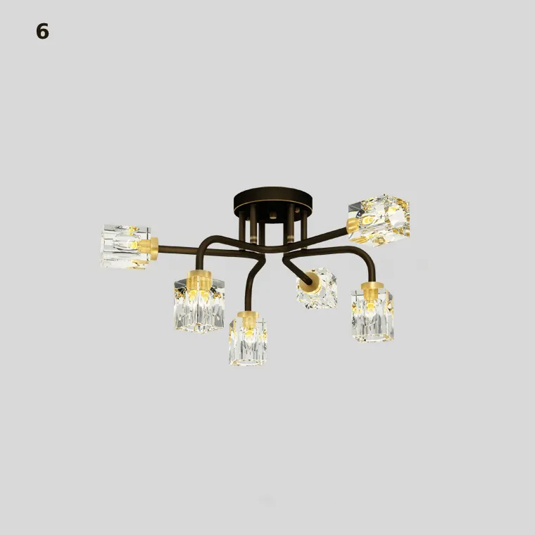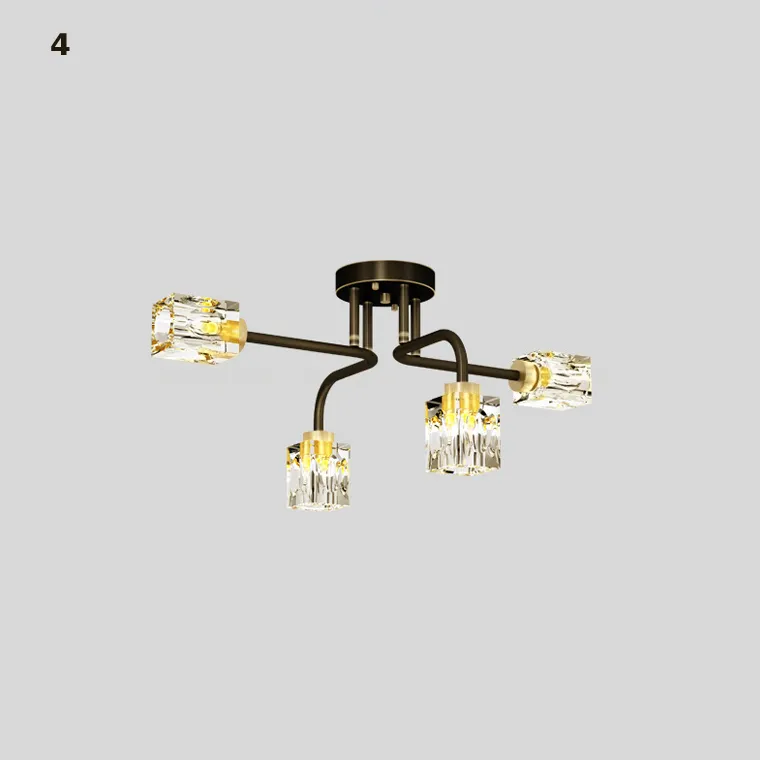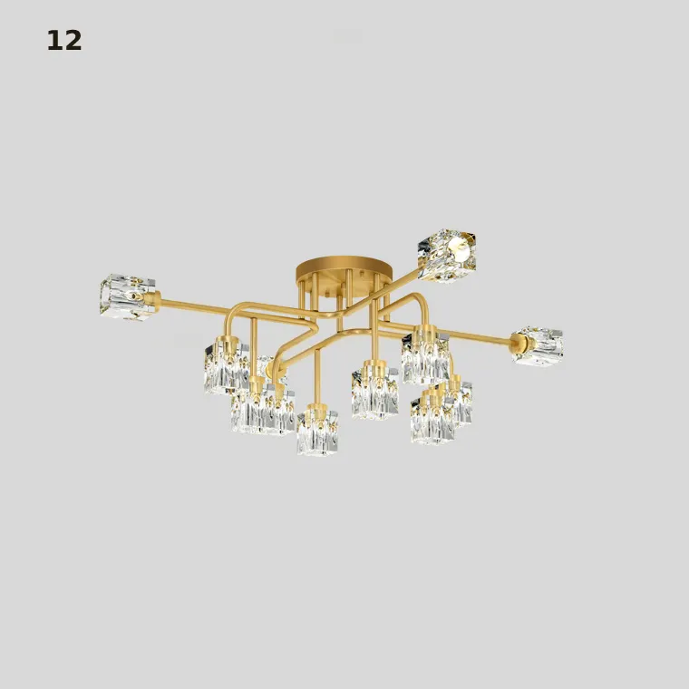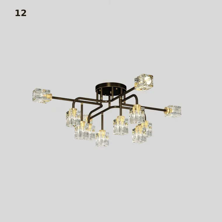 Серия потолочных люстр с разнонаправленными кристальными плафонами кубической формы