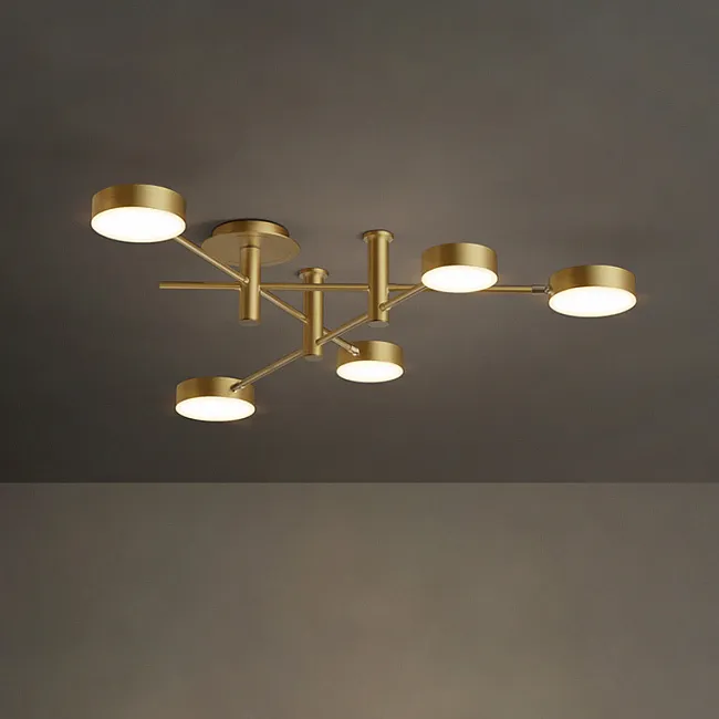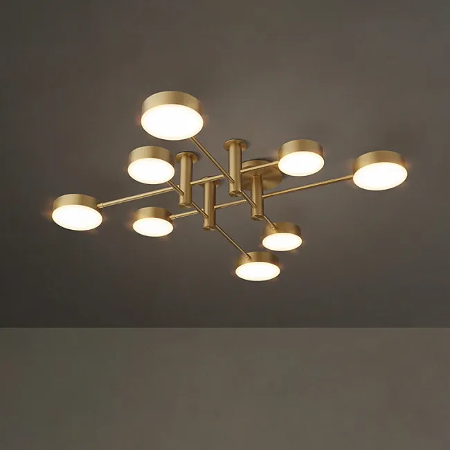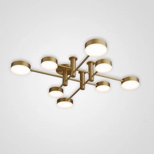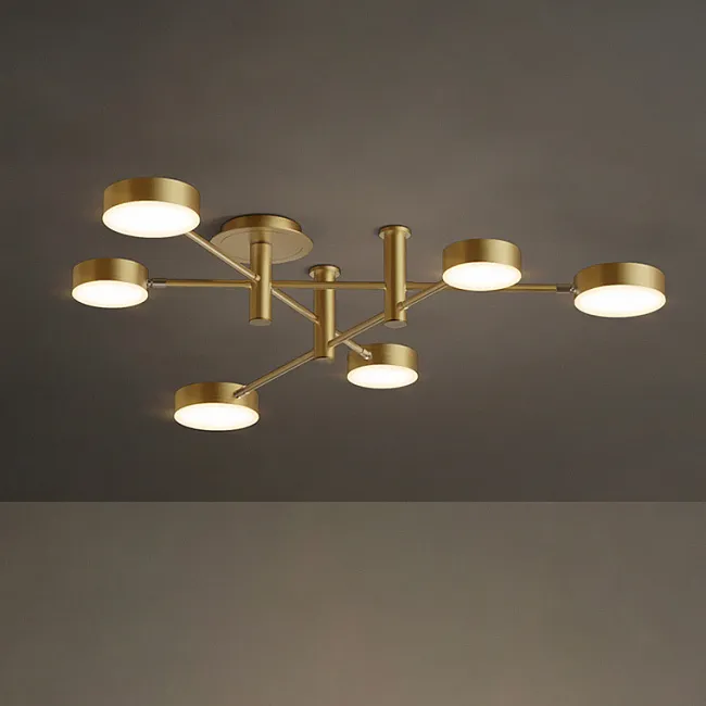 Корпус изготовлен из высококачественной латуни стандарта H65, что усиливает ощущение прочности и надежности. Латунь также придает потолочным люстрам изысканность и роскошь, подчеркивая их элегантность и статусный вид.