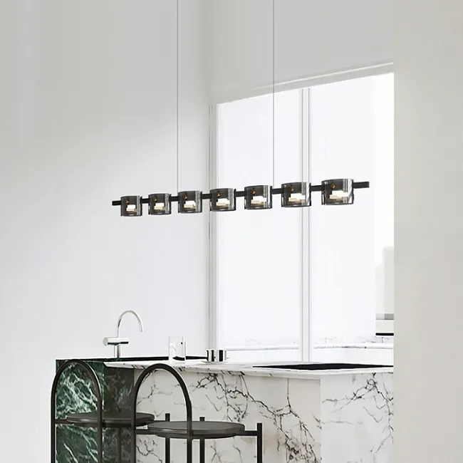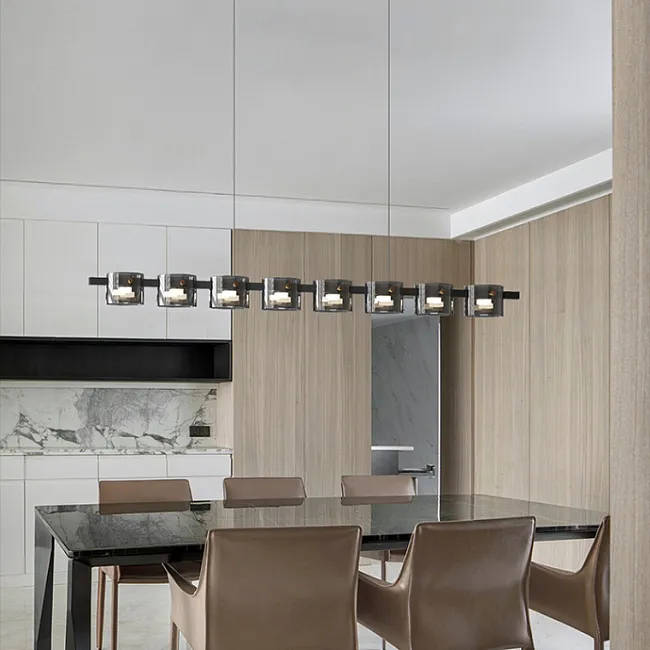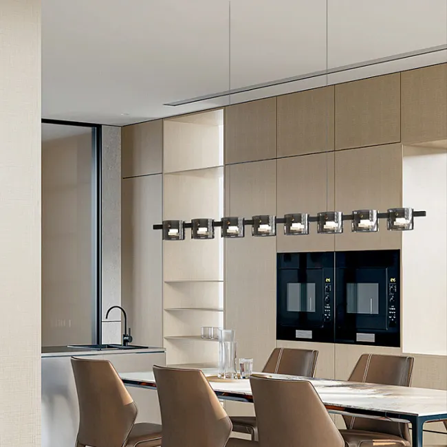 Серия потолочных светодиодных люстр с прямоугольными рассеивателями из рельефного стекла