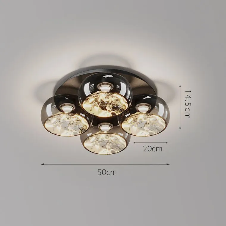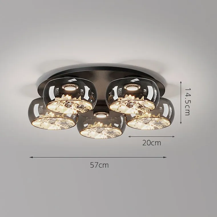 Потолочная люстра с прозрачными стеклянными плафонами с внутренним узором в виде гор