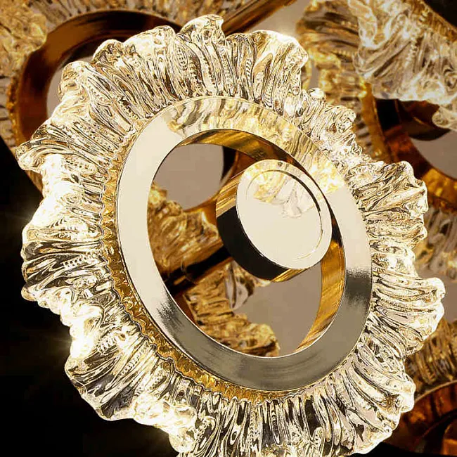Потолочная люстра с прозрачными стеклянными плафонами с внутренним узором в виде гор