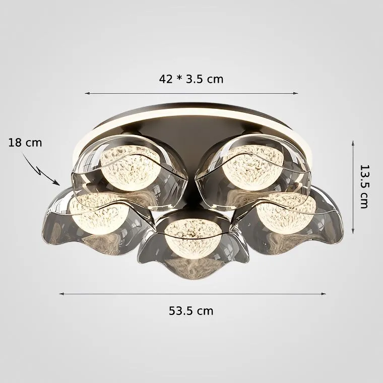 Потолочная люстра с прозрачными фактурными рассеивателями внутри куполообразных плафонов и дополнительным LED-источником на креплении