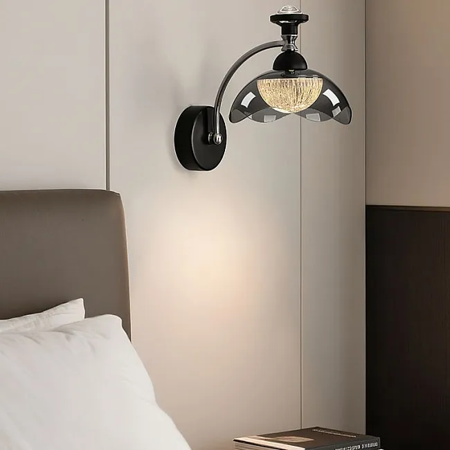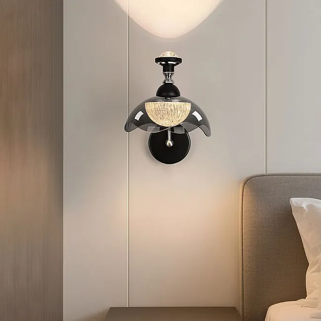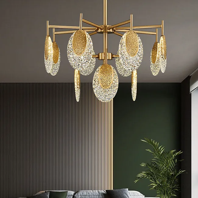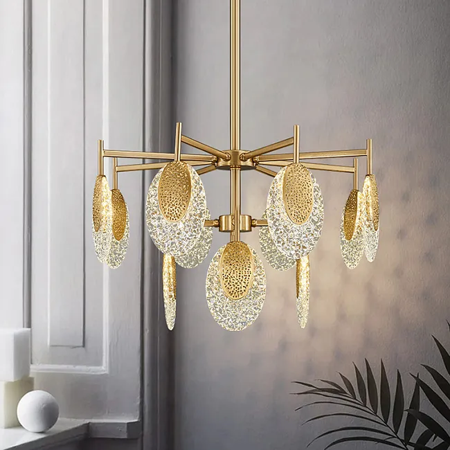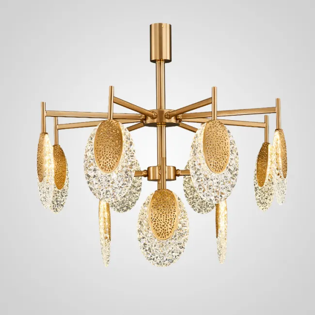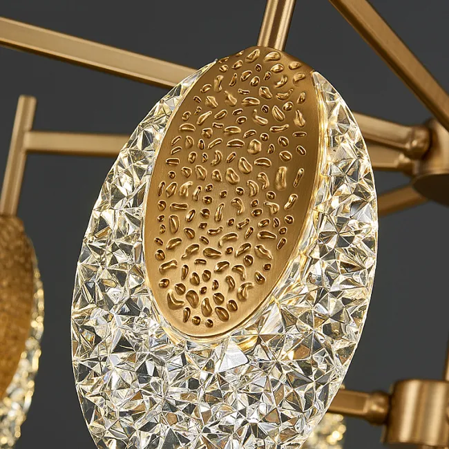 Потолочная люстра с прозрачными фактурными рассеивателями внутри куполообразных плафонов и дополнительным LED-источником на креплении