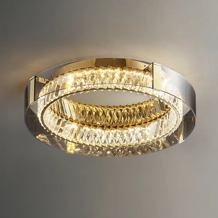 Состоящая из комбинации рельефного кольца из сверкающего хрусталя K9 и стильного стеклянного абажура, эта светодиодная люстра оставит неизгладимое впечатление. Она не только привнесет изюминку в ваш интерьер, но и обеспечит равномерное и приятное освещение.
