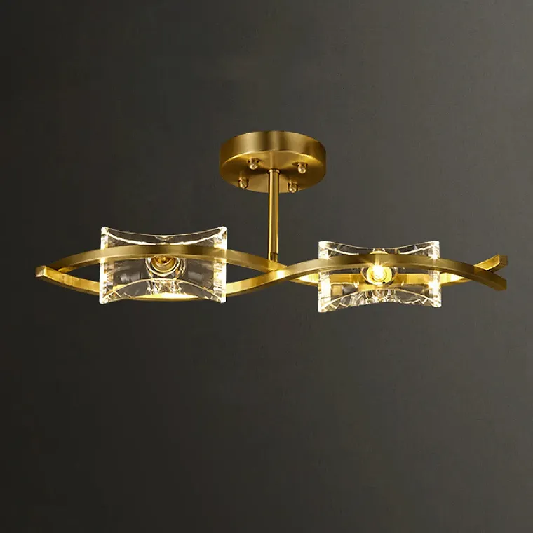 Потолочная люстра с двумя прозрачными плафонами в виде четырехугольных хрустальных слитков