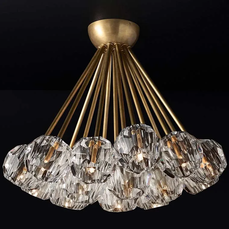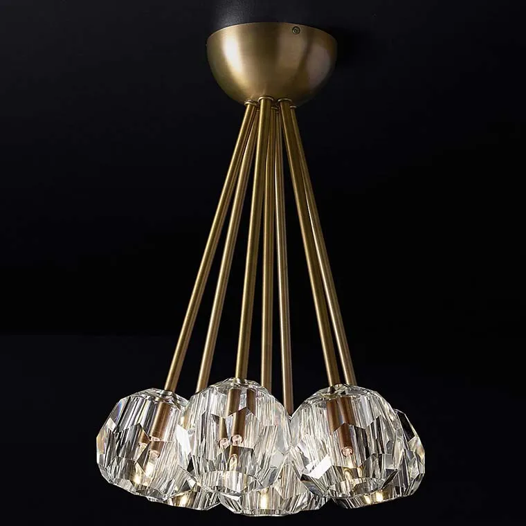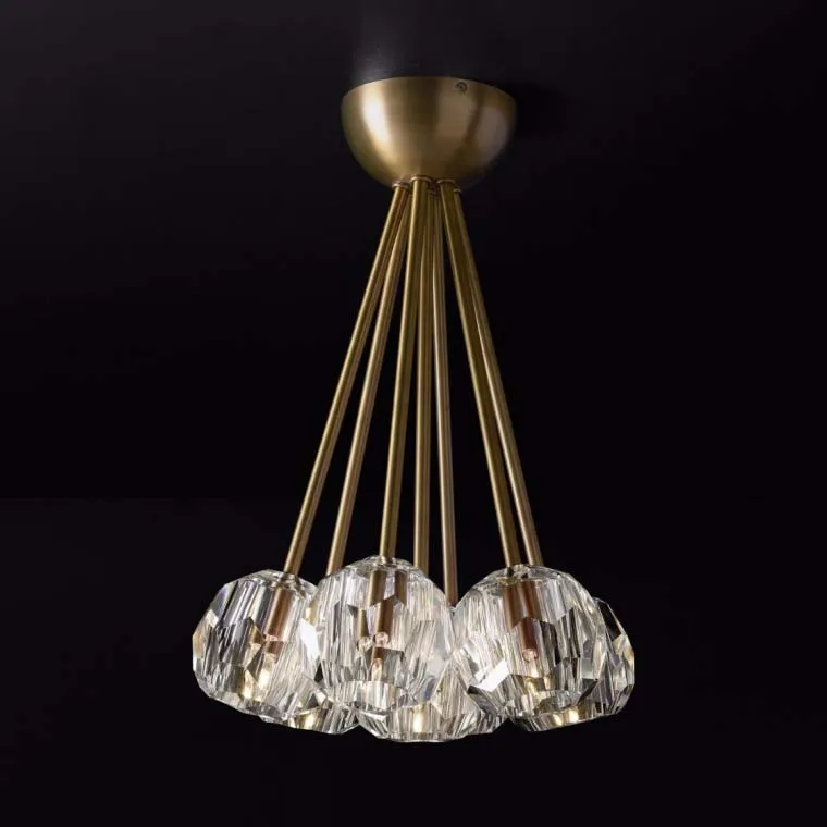 Потолочная люстра в стиле постмодерн с плафонами из граненого стекла добавит в интерьер роскошного лоска и блеска. Это именно та модель, которая способна превратить любое серое и тусклое пространство в нарядное, светлое и яркое помещение. Именно поэтому она стало фаворитом многих элитных ресторанов, шоу-румов и салонов красоты.