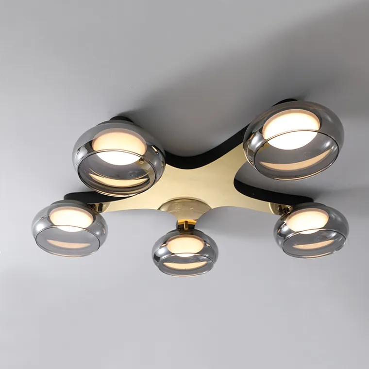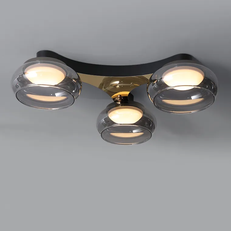 Светодиодная люстра для низких потолков с округлыми дымчатыми плафонами и внутренним матовым рассеивателем