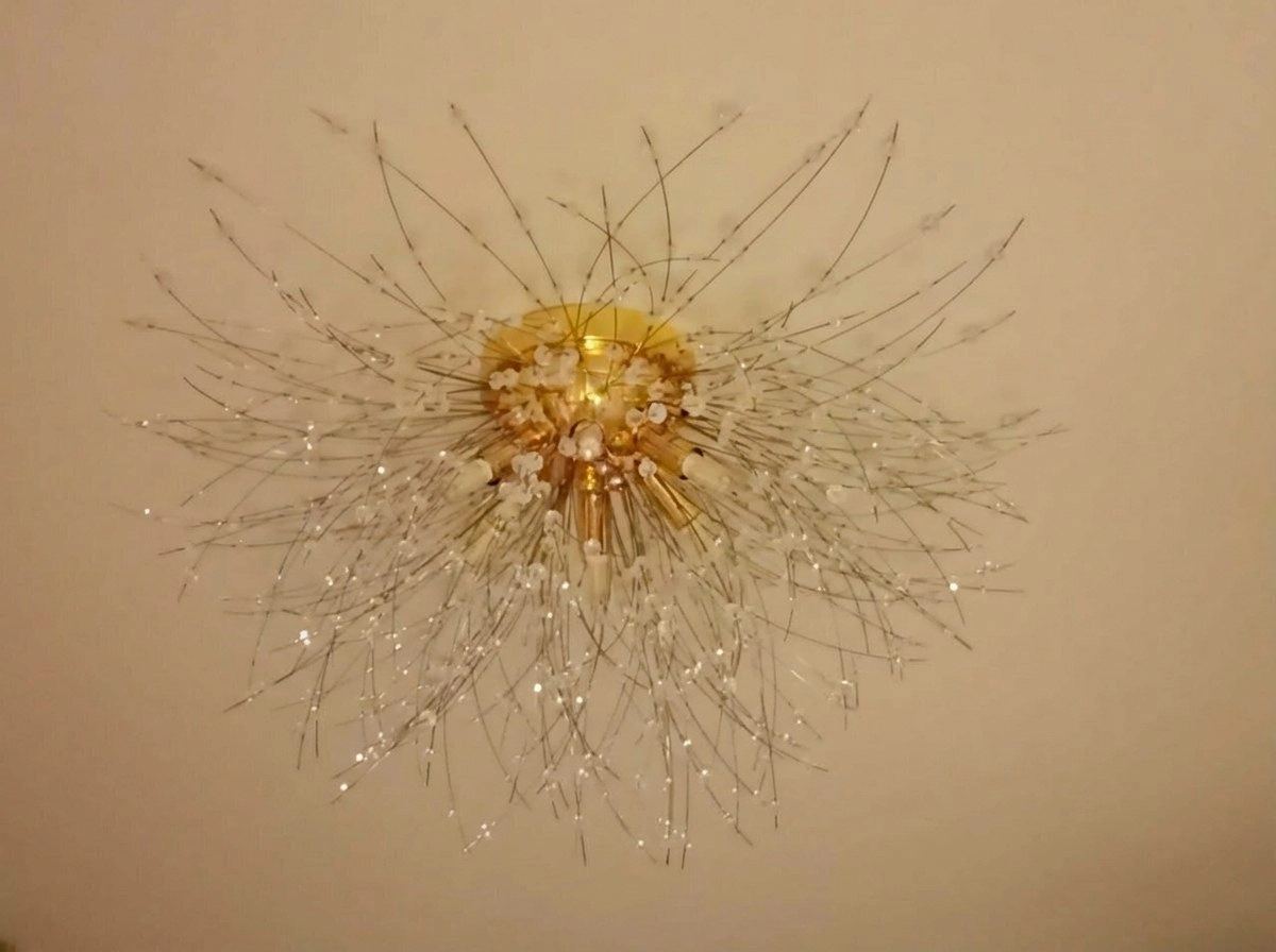 Светодиодная потолочная люстра в виде шара из хрустальных пучков с металлическим центром