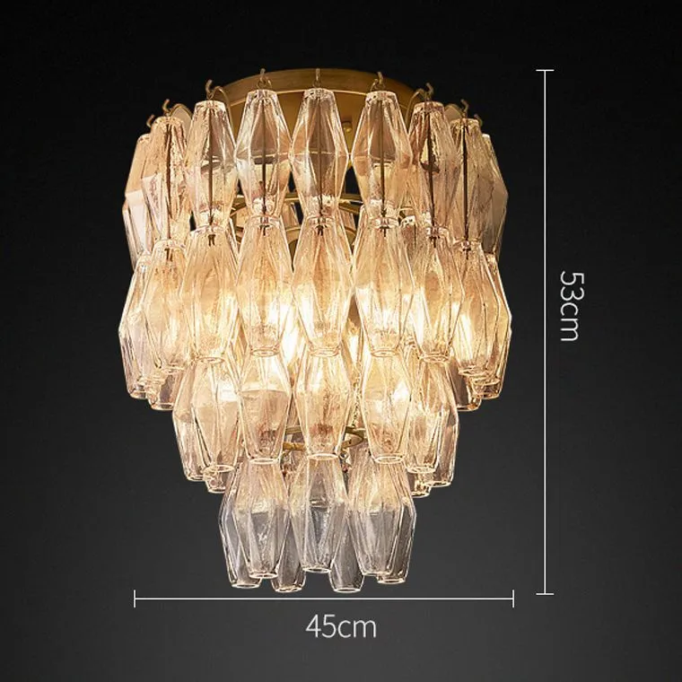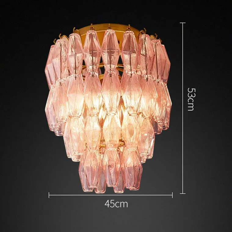 И вот она – серия потолочных люстр с многоуровневым абажуром из великолепных подвесок ромбовидной формы. Она словно излучает чарующую энергию и обволакивает помещение неповторимым сиянием. Прозрачные или розовые стекла плафонов искрятся, словно драгоценные кристаллы, подаренные небесами.