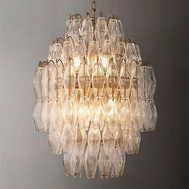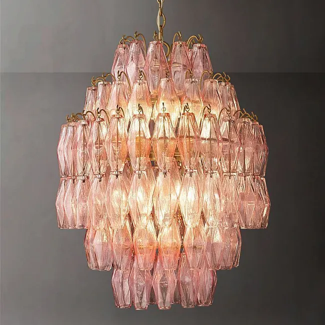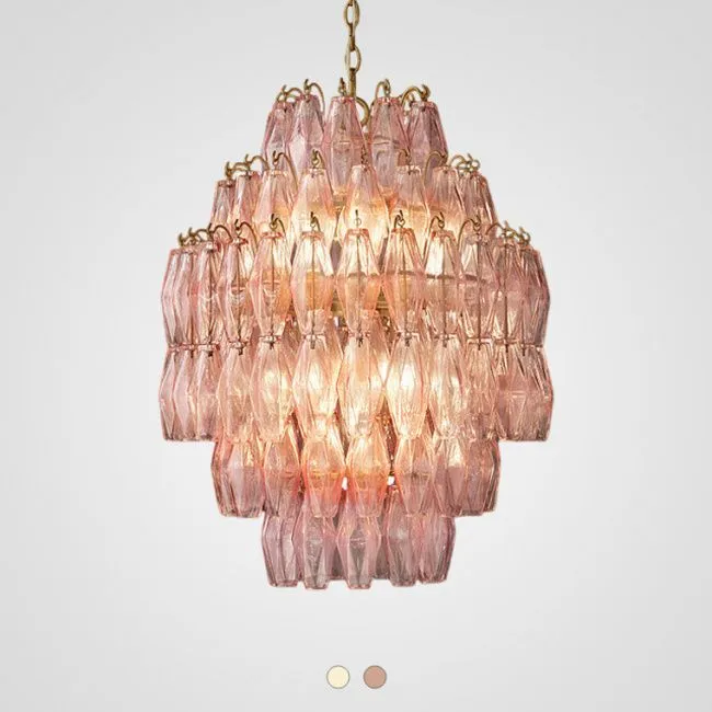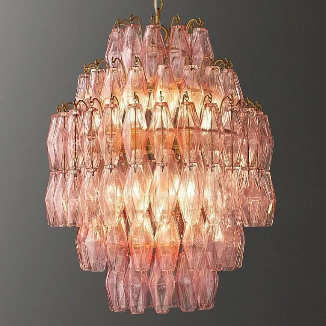 И вот она – серия потолочных люстр с многоуровневым абажуром из великолепных подвесок ромбовидной формы. Она словно излучает чарующую энергию и обволакивает помещение неповторимым сиянием. Прозрачные или розовые стекла плафонов искрятся, словно драгоценные кристаллы, подаренные небесами.