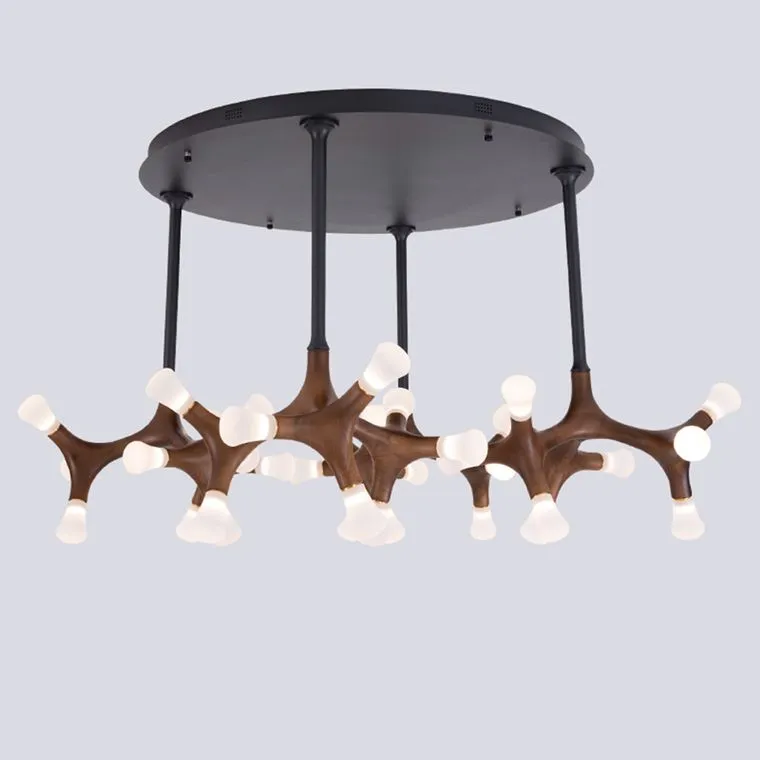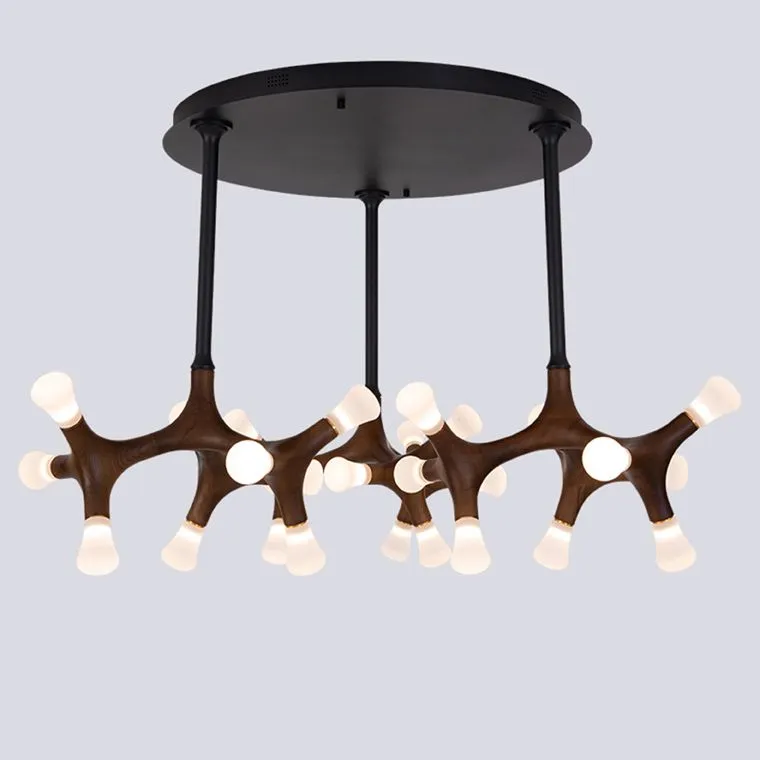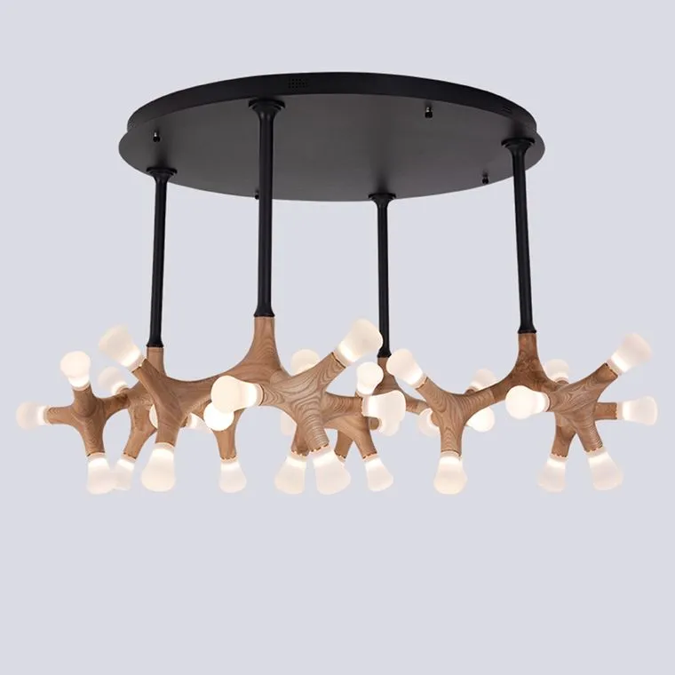 Каркас люстры выполнен из высококачественной древесины молекулярной формы, что обеспечивает прочность и долговечность конструкции. Этот материал отличается особой эстетикой и позволяет создавать плавные линии, которые идеально сочетаются с современными интерьерами.