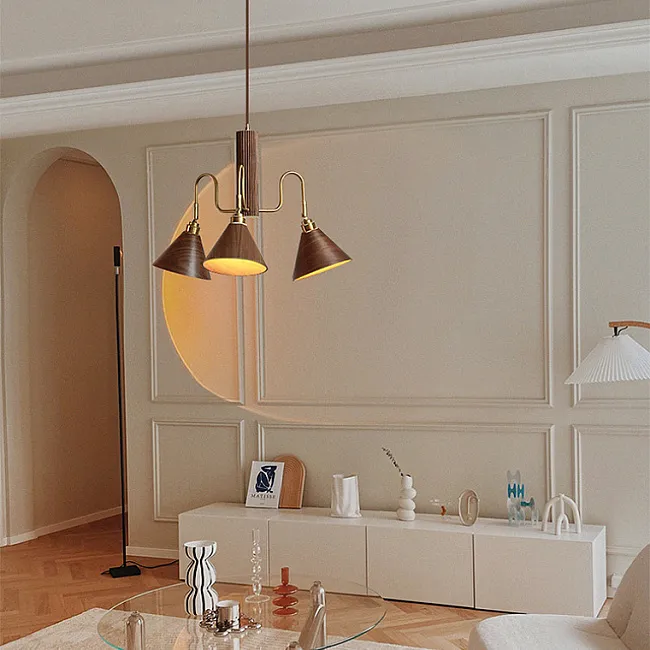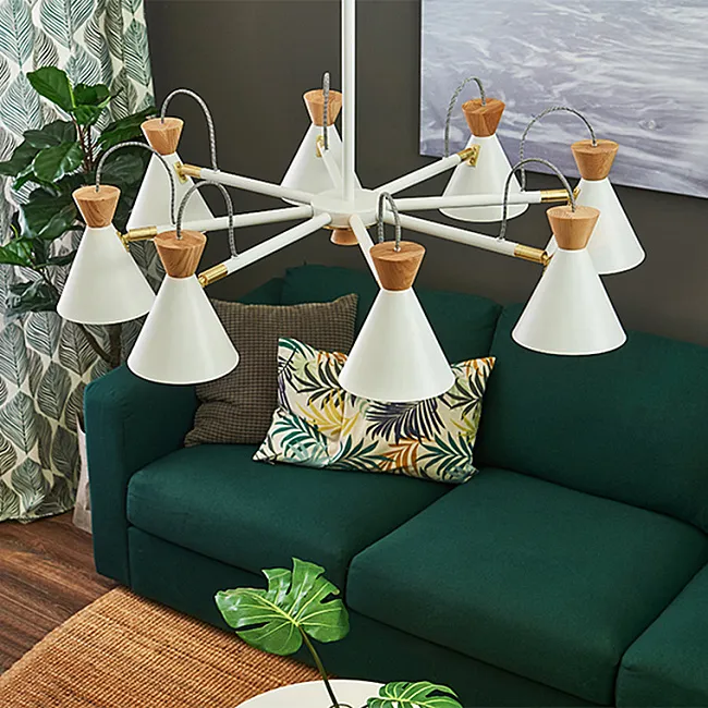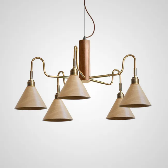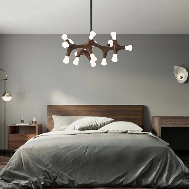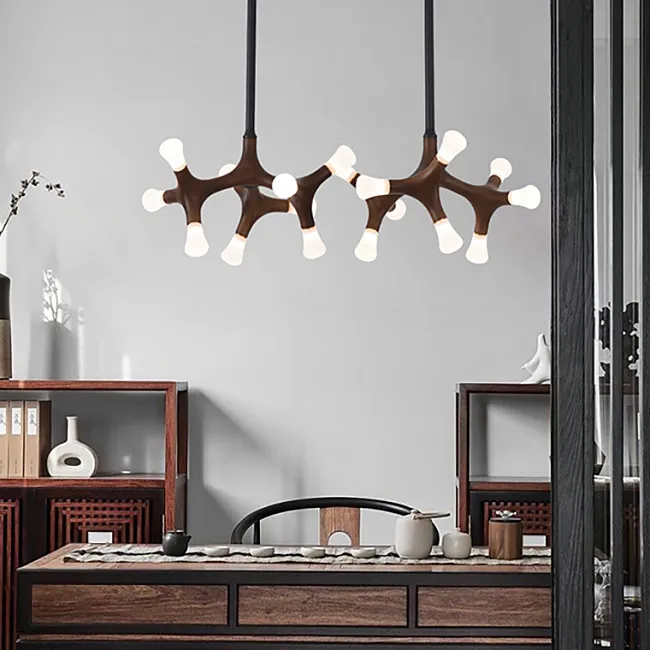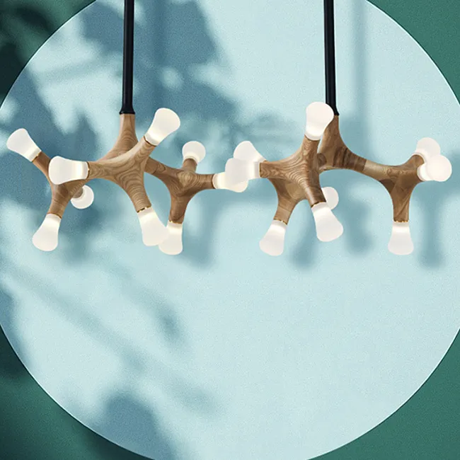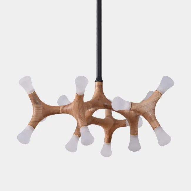 Каркас люстры выполнен из высококачественной древесины молекулярной формы, что обеспечивает прочность и долговечность конструкции. Этот материал отличается особой эстетикой и позволяет создавать плавные линии, которые идеально сочетаются с современными интерьерами.