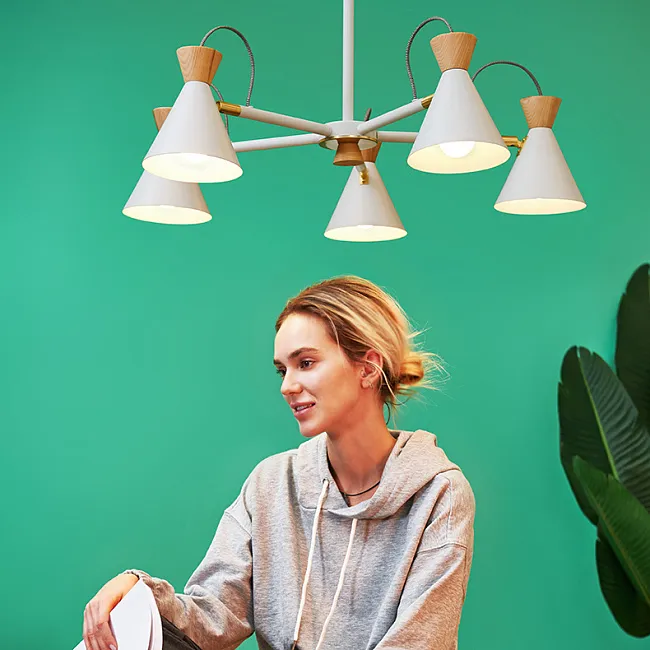 Два цветовых решения - светлое и темное дерево - позволят подобрать идеальный вариант для вашего интерьера. Благодаря этому, люстра будет гармонично сочетаться с любой мебелью и декором.