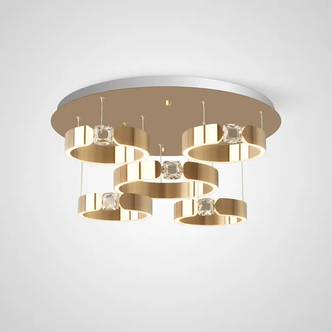 Серия потолочных светодиодных люстр с круглыми и кольцевыми источниками с рассеивателями в виде хрустальных камней