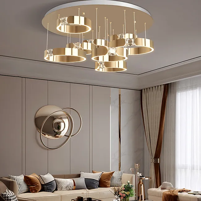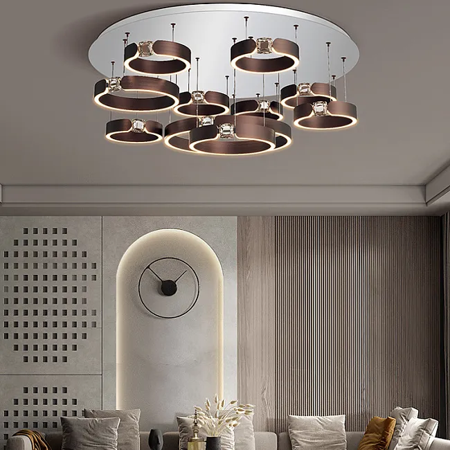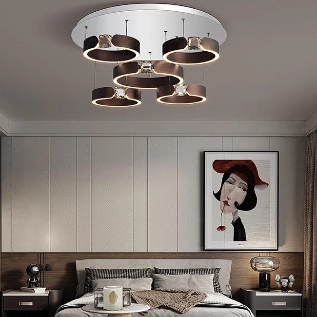 Очень заинтересовала эта чёрная люстра, купить решила не раздумывая! Отдельная благодарность дизайнеру за задумку. А производитель виртуозно воплотил такую идею. Теперь на моём потолке элегантные колечки с инкрустацией камнями. Светится их контур, там лед подсветка. Всё в этой люстре идеально!