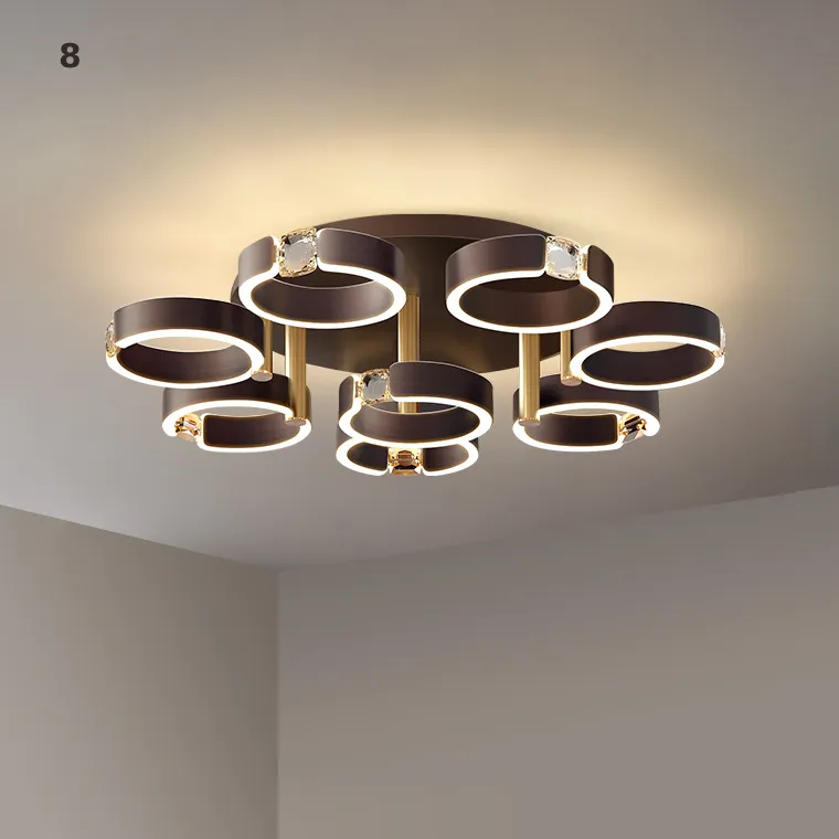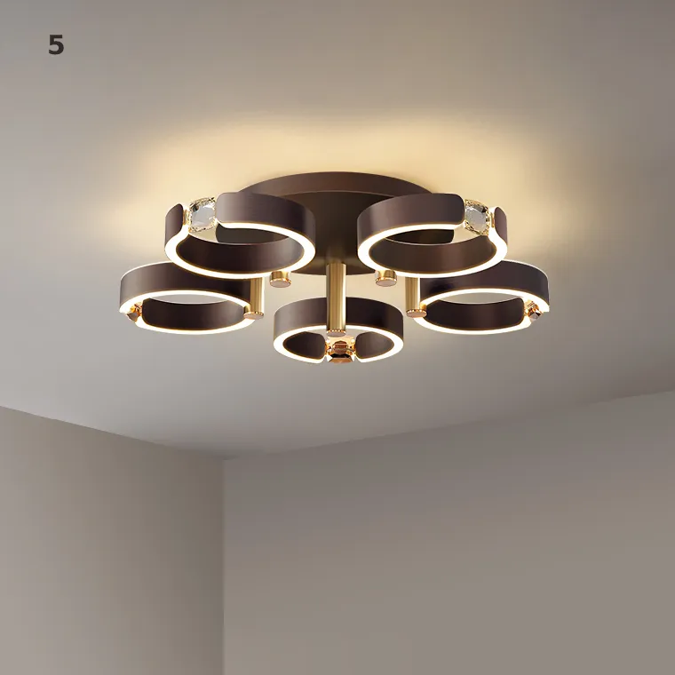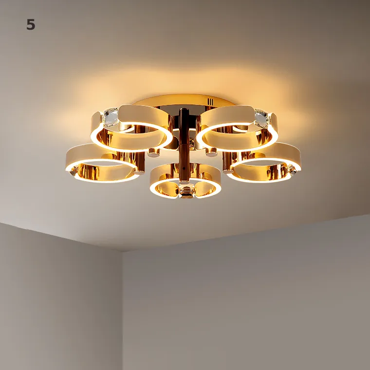 Серия потолочных светодиодных люстр с хрустальными рассеивателями в виде кристаллов на кольцевых источниках