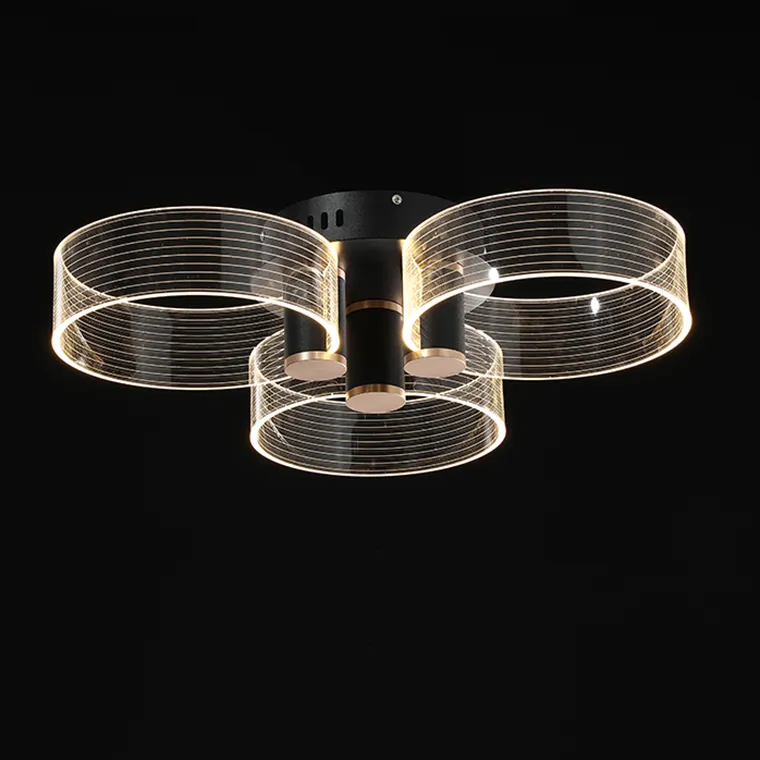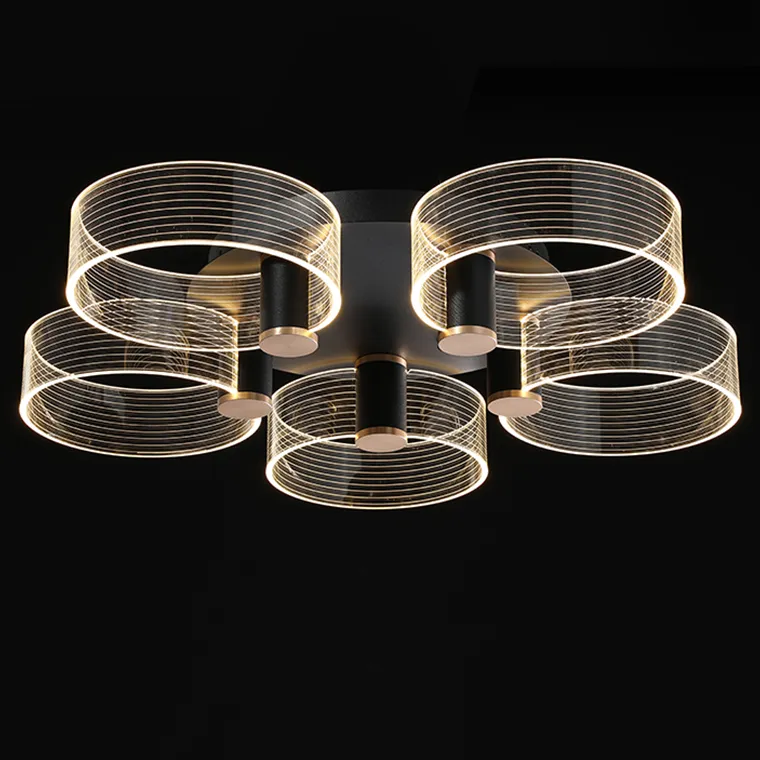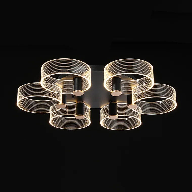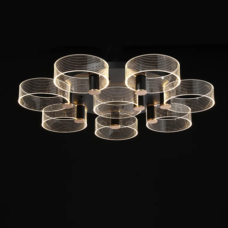 Потолочная светодиодная люстра с кольцевыми плафонами из прозрачного акрила с гравировкой