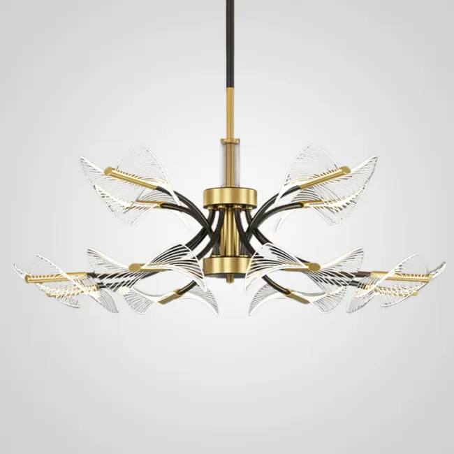 Потолочная светодиодная люстра с кольцевыми плафонами из прозрачного акрила с гравировкой