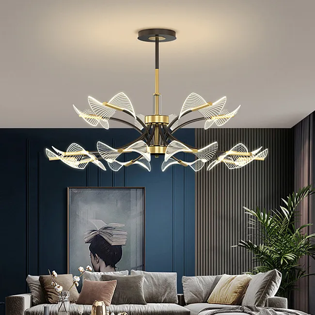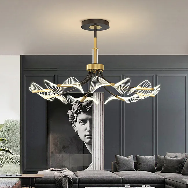 У меня потолок тёмный, поэтому я сразу подумала, что эта люстра станет его акцентом. И задумка удалась. Я даже не думала, что так будет смотреться в реальности. Когда включаю, всё сверкает. В этих кольцах из акрила выгравированы линии, и они светятся изнутри. Кажется вроде, что тонкие полоски горят, но в комнате светло даже очень.