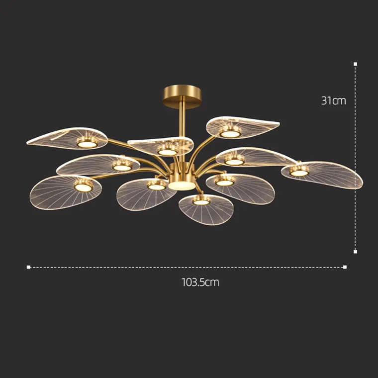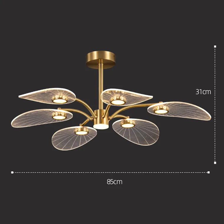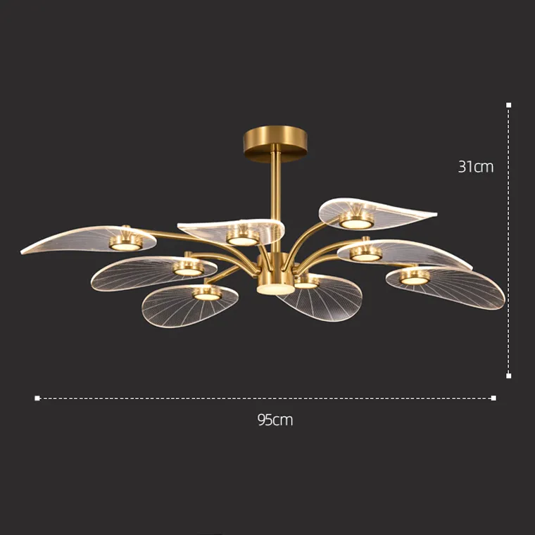 Серия потолочных светодиодных люстр с круглыми плафонами внутри прозрачных лепестков