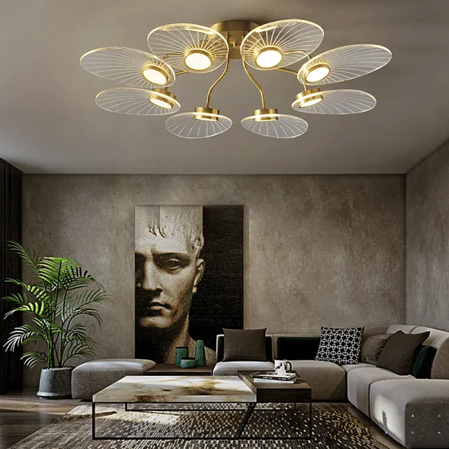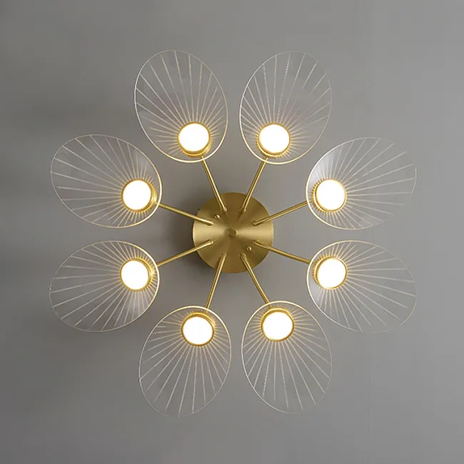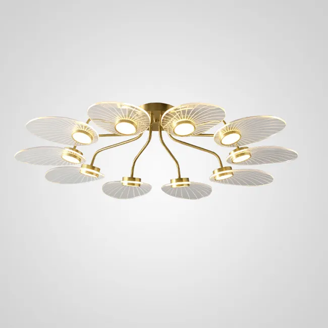 Серия потолочных светодиодных люстр с круглыми плафонами внутри прозрачных лепестков