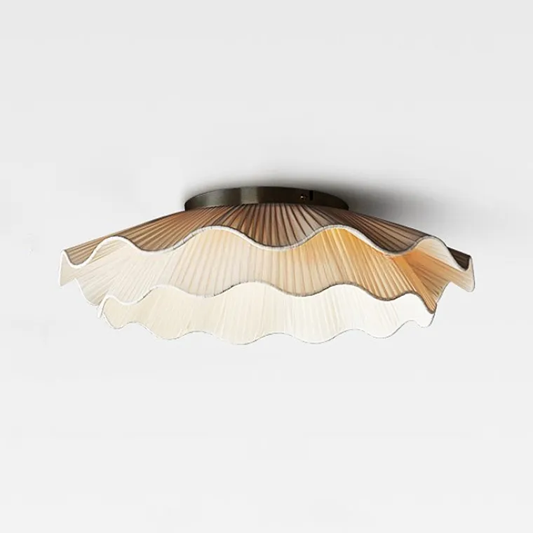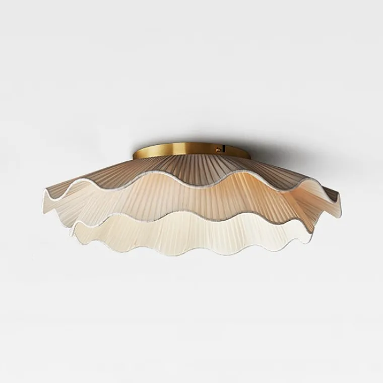 Потолочная люстра с двойным рельефным абажуром волнообразной формы из текстиля ручной работы