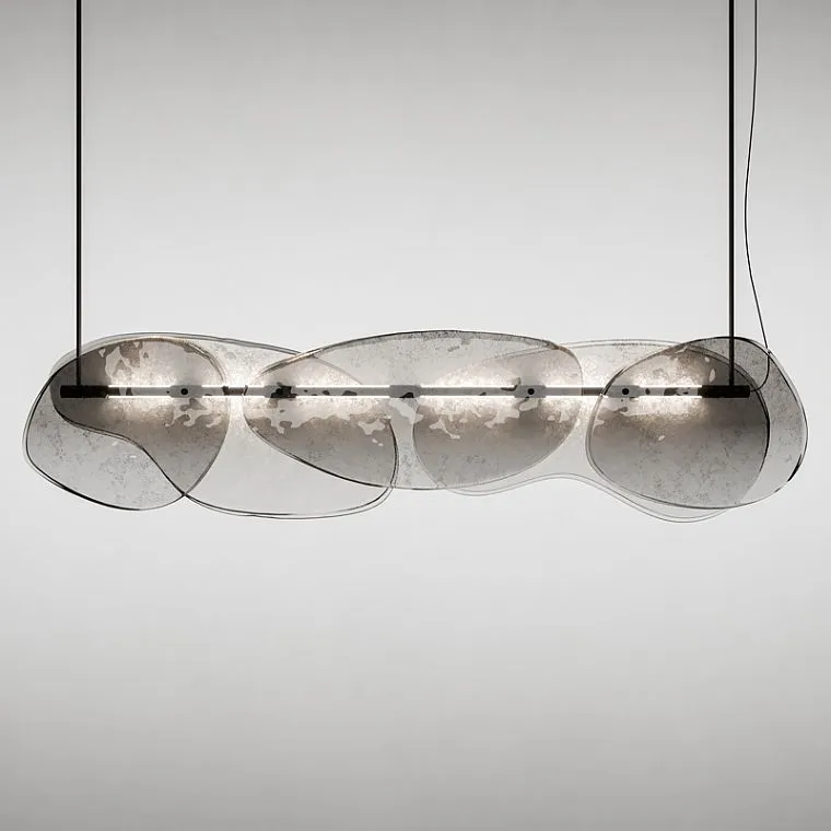 Серия светодиодных реечных светильников с двунаправленным светом и рассеивателями неправильной формы из дымчатого стекла