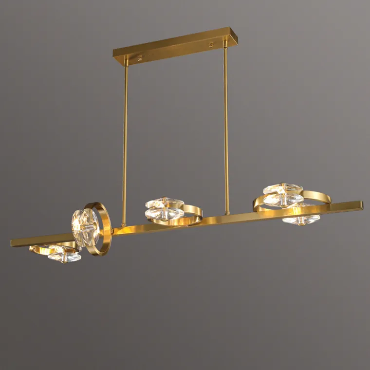 Дизайнерская реечная люстра ADONICA-LONG – это минимализм и роскошь в одной модели. Сдвоенные хрустальные пластины придают яркость и богатство, но при этом в целом люстра смотрится сдержанно и элегантно. Отличное решение освещения не только в классическом, современном, английский, барокко стилях, но и минималистичном для зон обеденного стола, барной стойки или зоны отдыха.