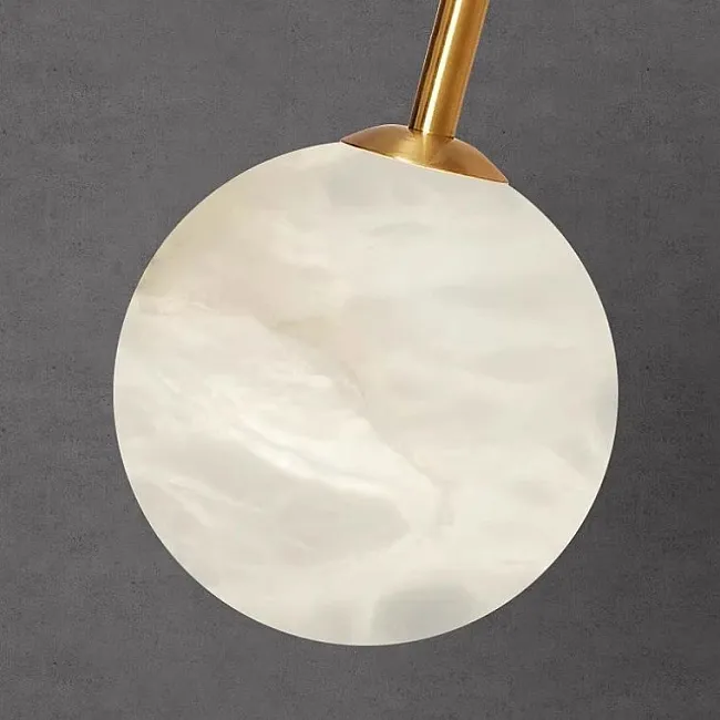 Дополнительный кольцеобразный плафон добавляет нотку изысканности и современности. И, конечно же, завершение этой симфонии стиля – латунный декоративный элемент в виде полу сферы, изящно расположенный на прямоугольной рейке, которое придает светильнику завершенность и элегантность.