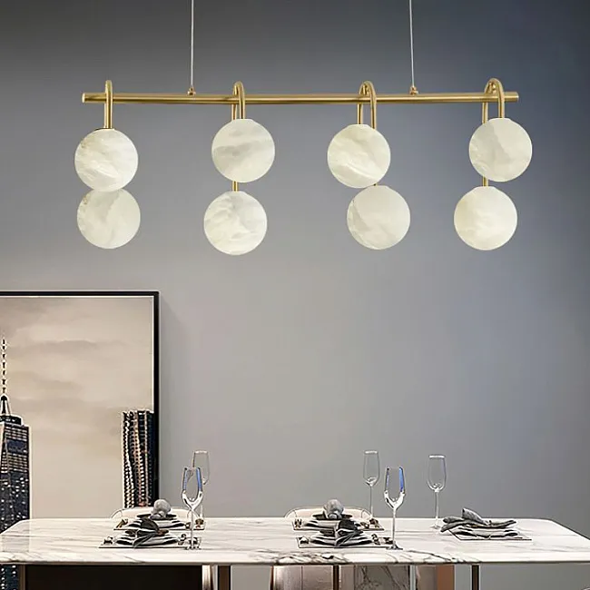 Струнный подвес с возможностью регулировки высоты превращает установку в настоящее творчество, позволяя вам настроить светильник так, чтобы он идеально соответствовал вашему пространству и уникальному стилю. Латунный корпус в форме прямоугольника с направленным вниз световым элементом наполняет каждый уголок мягким и теплым светом.