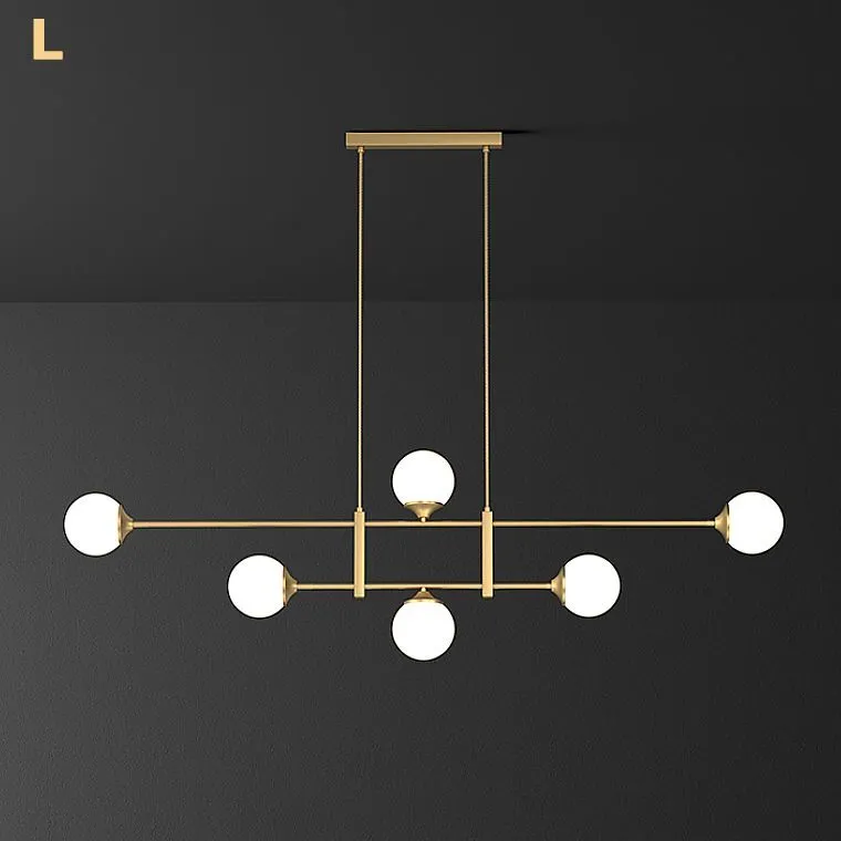 Серия реечных светильников с разнонаправленными шарообразными плафонами из стекла на двухуровневых сцепленных рейках. Серия реечных светильников представляет собой элегантное решение для освещения помещений, где важны лаконичность и визуальная легкость конструкции. Корпус из латуни, выполненный в минималистичном стиле, подчеркивает гармонию и современность дизайна.