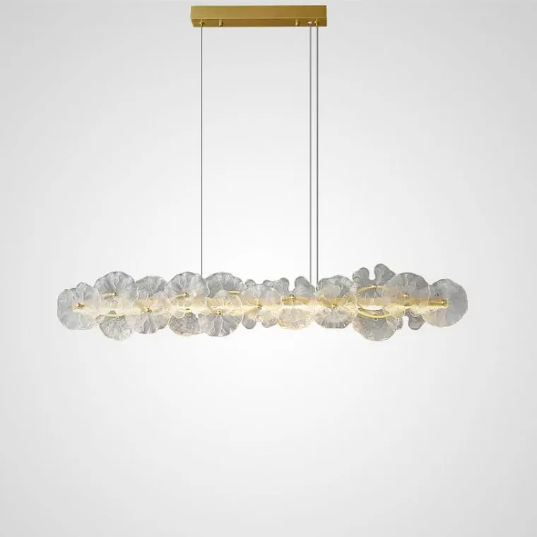 Главной особенностью AURELIUS LONG являются детализированные прозрачные листья лотоса, которые сделаны из высококачественного стекла. Каждый лист имеет латунную сердцевину, которая придает им особую привлекательность и натуралистичность. Это придает люстре особую изысканность, которая идеально сочетается с любым интерьером.