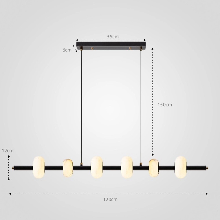 Реечный светильник в виде горизонтального стержня с мраморными плафонами в форме эллипса