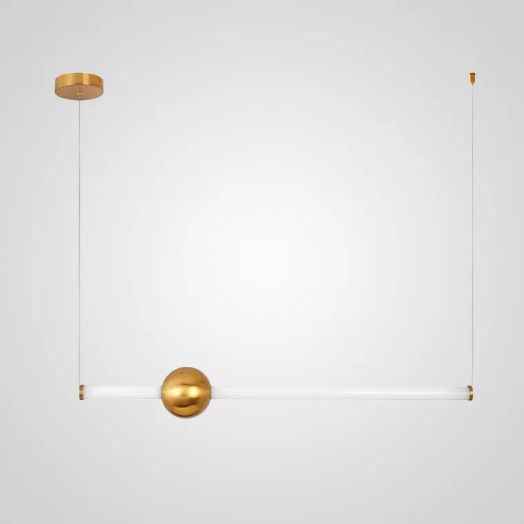 Современный светодиодный светильник BRANT-LONG отличается необычным дизайном. Белый матовый плафон-стержень декорирован золотым шаром - никаких излишеств, но, в то же время, оригинальность исполнения. Благодаря светодиодам, освещение мягко и комфортно наполняет пространство. С помощью тросов регулируется высота потолочного светильника, позволяя акцентировать свет на отдельных участках в помещении. Подвесная люстра идеально впишется в интерьер коммерческих помещений, а также гармонично дополнит обстановку жилого дома.