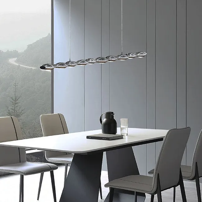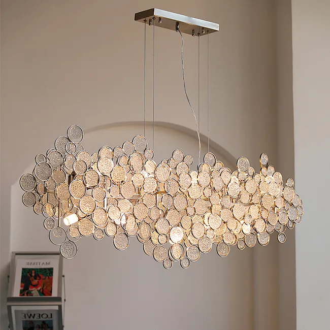 Представь себе уютный уголок в твоей столовой, озаренный мягким и теплым светом реечного светильника с ярким абажуром из блестящих хрустальных дисков. Этот изысканный светильник не только создаст загадочную и романтичную атмосферу, но и станет идеальным партнером для вечерних посиделок за столом с близкими и друзьями.