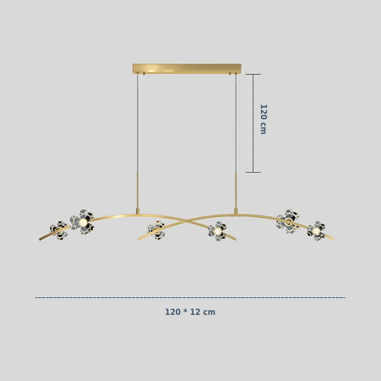Серия реечных светодиодных светильников на дугообразном каркасе с прозрачными рассеивателями, стилизованными под цветы со светящейся сердцевиной