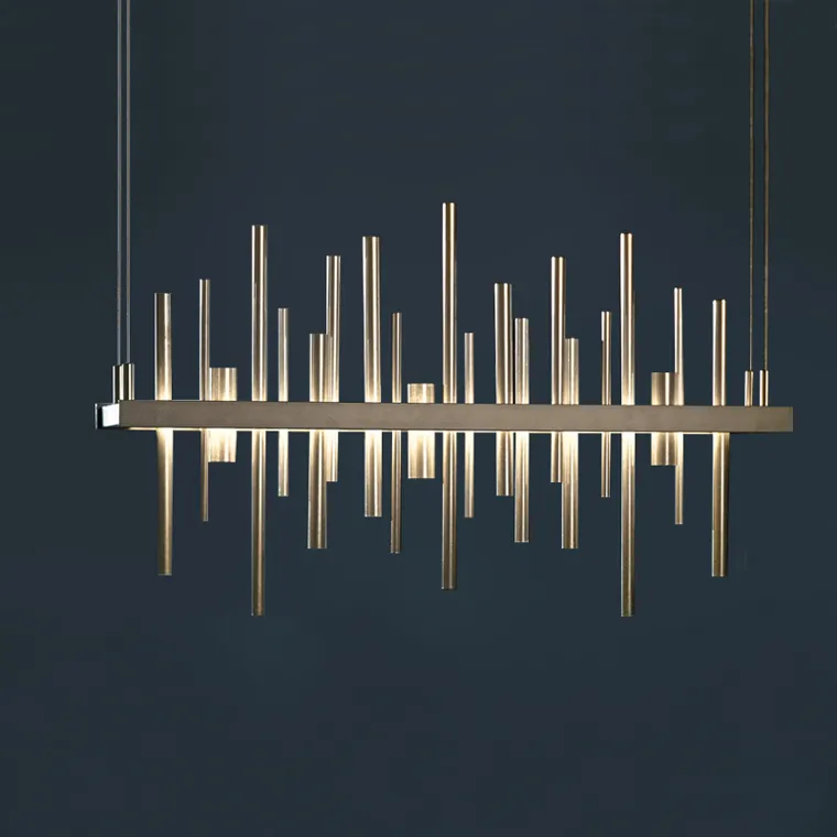 Реечный светодиодный светильник с плафонами в виде металлических трубочек разной высоты