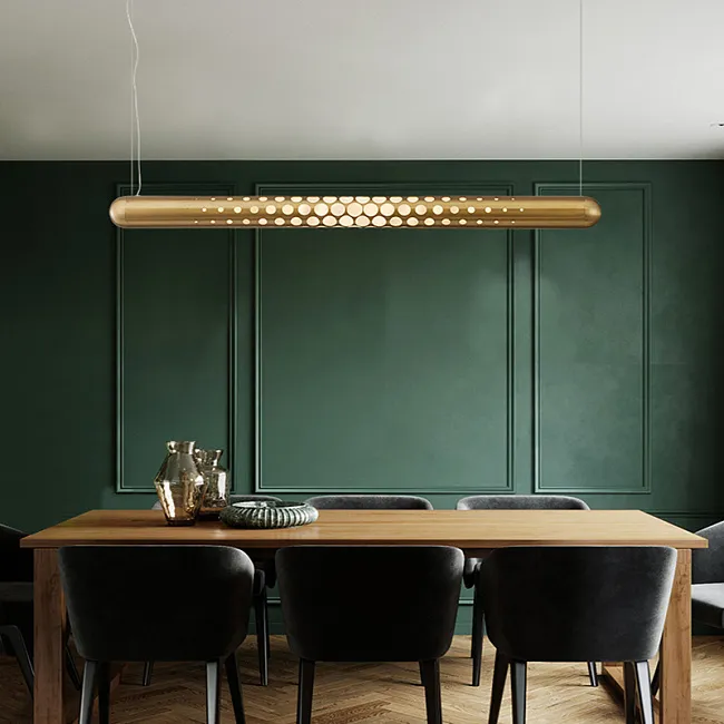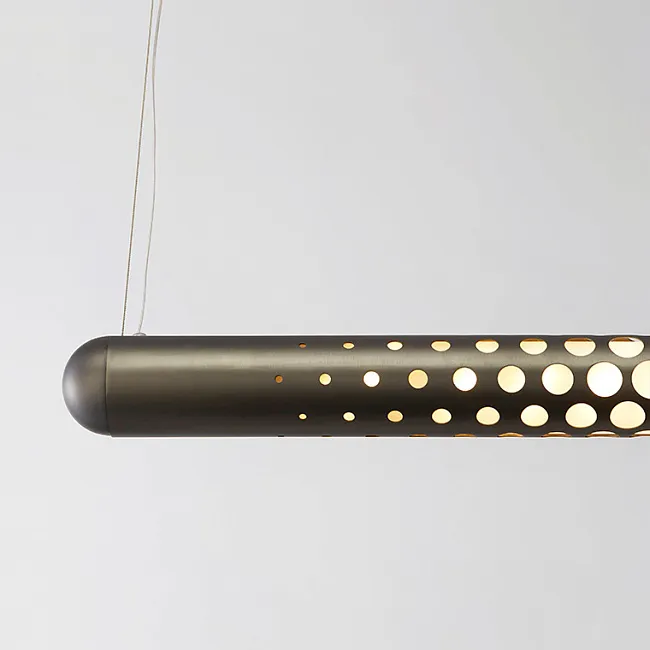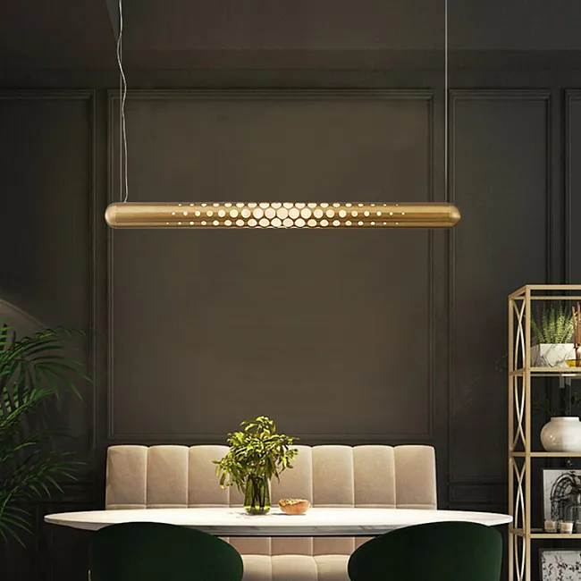 Искал долго люстру в свою холостяцкую берлогу лофт, и только тут нашёл то, что на самом деле понравилось. Я заказал модель в хроме, у меня все бытовая техника такая, да и практично это, на чёрном пыль видно сразу. Купил пока только одну в гостиную, но думаю ещё и на кухню взять, правда поменьше размером. В невключенном виде сразу и непонятно, что это люстра. А как включаешь, несколько лампочек в трубке загораются. Необычно, но без излишеств.