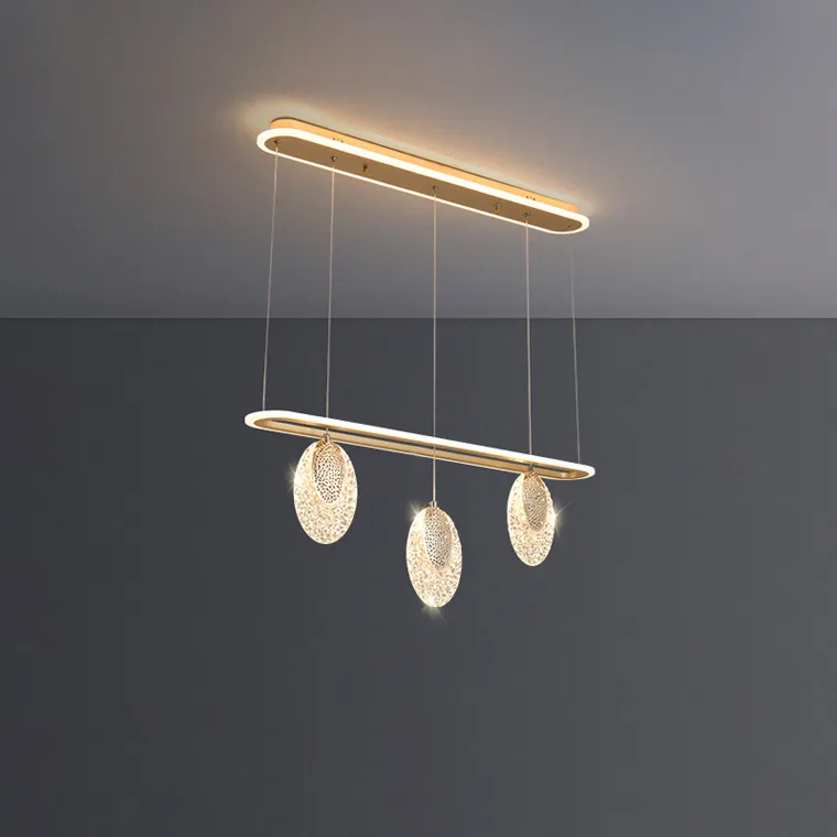 Светодиодный светильник в виде комбинации закольцованной рейки с LED-подсветкой и трех плоских рельефных плафонов листовидной формы