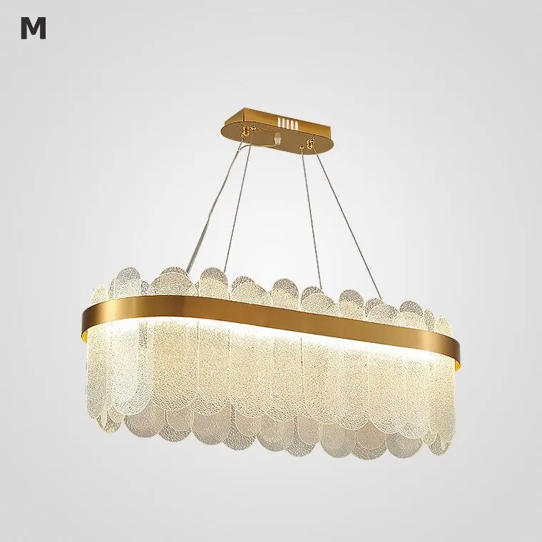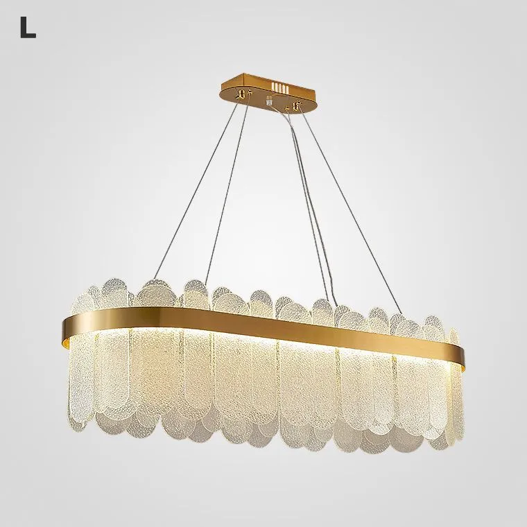 Недавно ремонтировали кухню и заказали эту люстру. Висит над столом и радует меня и домочадцев. Люстра овальная, длинная, весь стол освещает. Классно сделана, латунный овал и на нём интересные стеклянные пластинки с рельефом. Через них свет лампочек преломляется и так красиво нежно светит. Теперь кухня любимое место в доме.