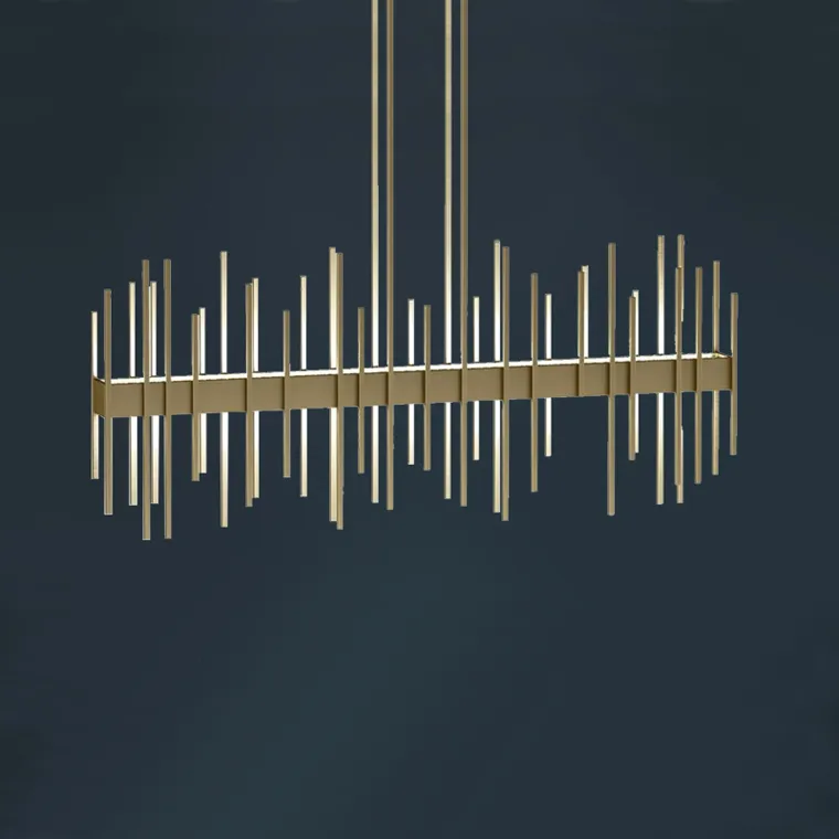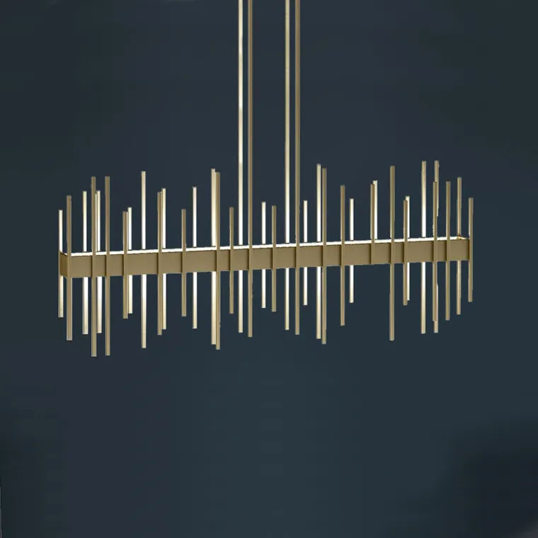 Реечный светодиодный светильник с плафонами в виде вертикальных металлических стержней разной высоты