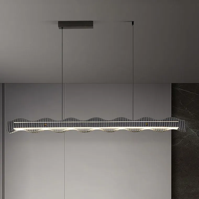 Представляем вам реечный светодиодный светильник CHIFFA WAVE L, созданный для тех, кто ценит утонченную элегантность и изысканный стиль. Этот уникальный светильник сразу привлекает внимание благодаря своему черному корпусу и изысканным рассеивателям волнистой формы, которые изготовлены из рельефного стекла. Струнный подвес добавляет конструкции легкости, создавая эффект парения в воздухе.