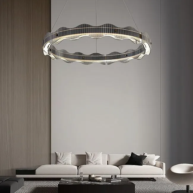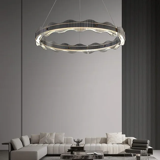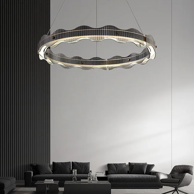 Этот светильник не просто функционален, он является воплощением стиля и вкуса. Его восхитительные волны из рельефного стекла играют со светом, создавая изящную игру теней и бликов, которая добавляет пространству глубину и динамику. Каждое включение этого светильника становится маленьким световым представлением, которое превращает обычное помещение в шедевр дизайнерского искусства.