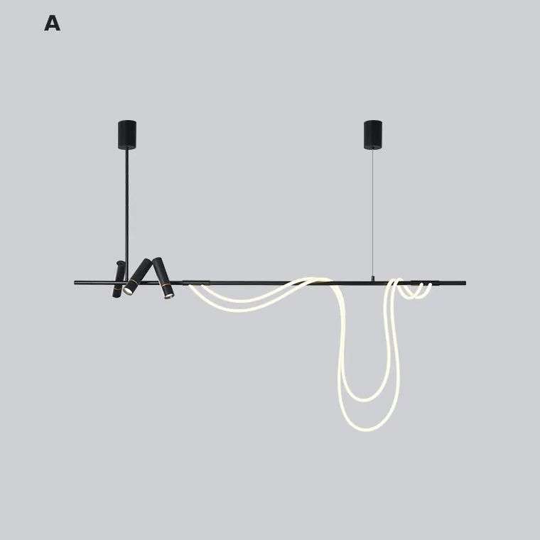 Серия реечных светодиодных светильников с тремя спотами и свободно свисающим светодиодным шнуром