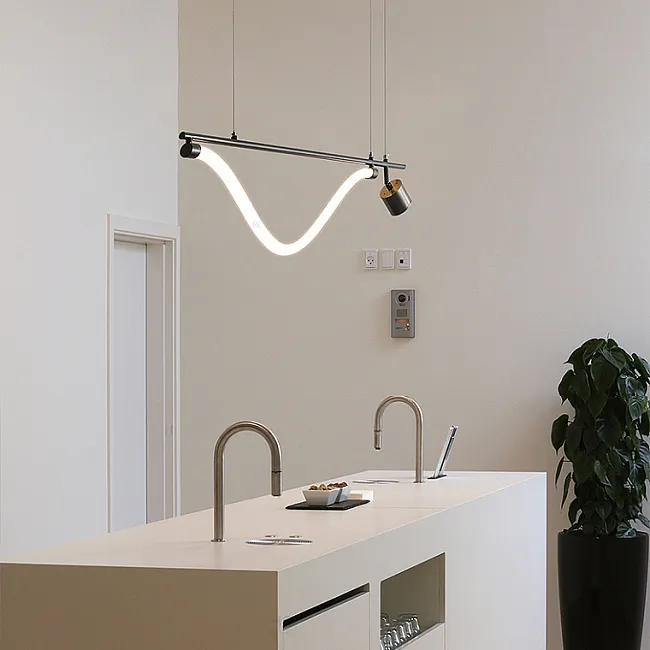 Серия реечных светодиодных светильников с тремя спотами и свободно свисающим светодиодным шнуром