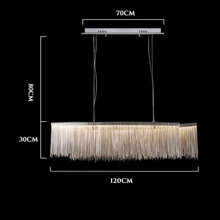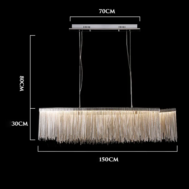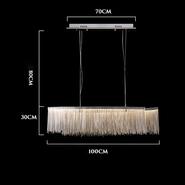Реечная люстра CONCORDIA LONG B - это прекрасный выбор для тех, кто хочет добавить в свой интерьер нотку изысканности и стиля. Благодаря своей прямоугольной форме и абажуру из множества хромированных цепочек, она станет идеальным решением для любого помещения.